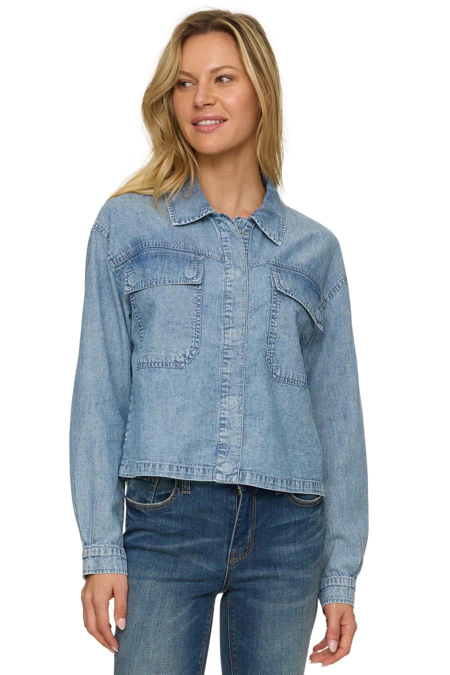 The Hayden Jacket is designed to move effortlessly from season-to-season. Wear it as a cool weather layer or on its own in the warmer months of Spring and Fall. Lightweight and breathable, the cotton fabric offers a denim-like look. The hidden snap closures and flap front pockets give this versatile wardrobe staple a vintage vibe.