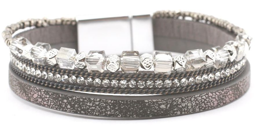 Delicate crystals and beads form this banded bracelet. Magnetic clasp closure.