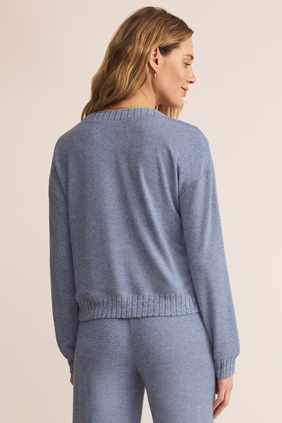 This fabric is a velvety, silky soft brushed jersey knit and you will love how it fits and feels. Featuring a ribbed v-neck, cuff and hem, the heavy soft wash and relaxed fit are perfect for a Saturday at home or out to brunch. Style this top with the matching lounge pant (Style #ZLP254700), or pair it with your favorite jeans - it's versatile and oh-so-comfy!