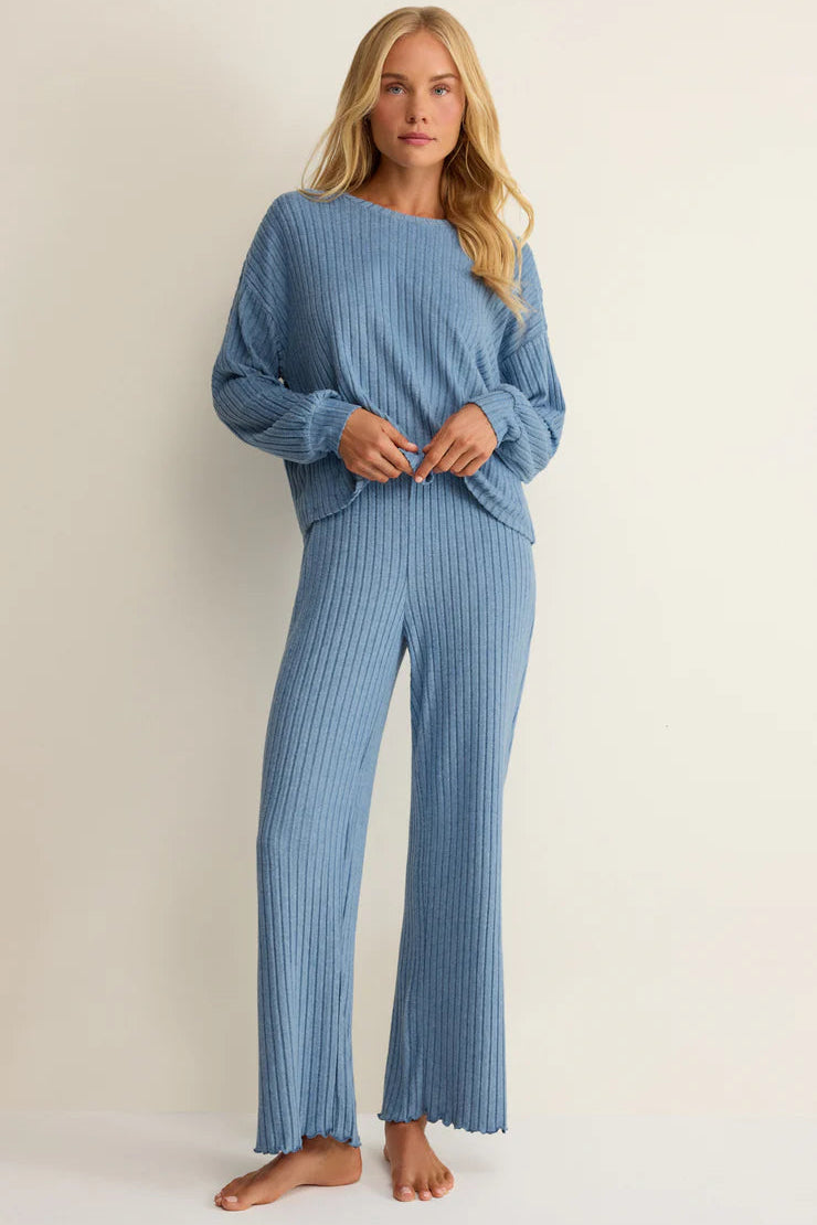 Soft, silky rib knit fabric makes this lounging pant the perfect go-to for a relaxing Saturday. Featuring a high rise cut, full length leg and smocked waistband, this lightweight pant couldn't be more comfortable.